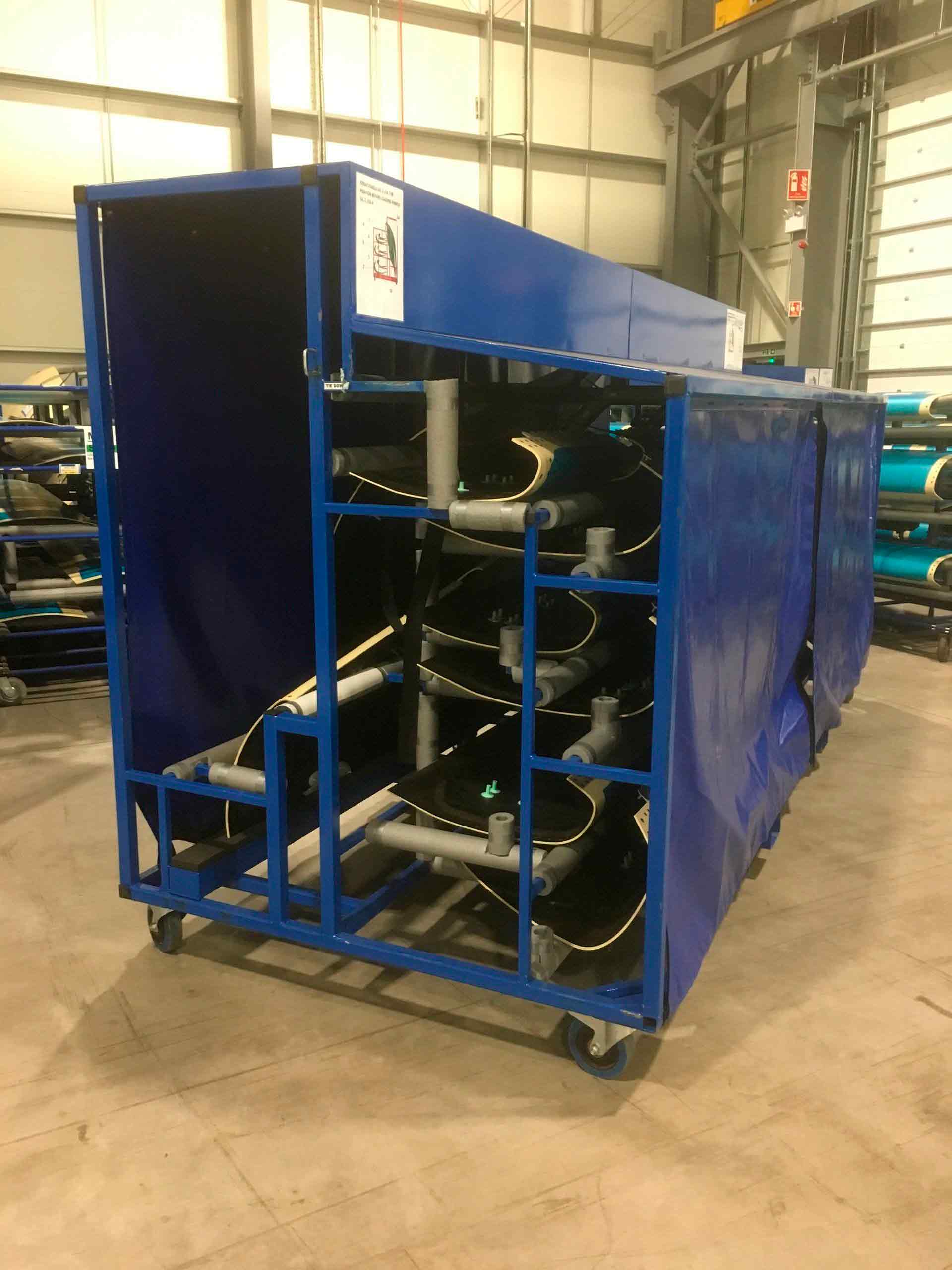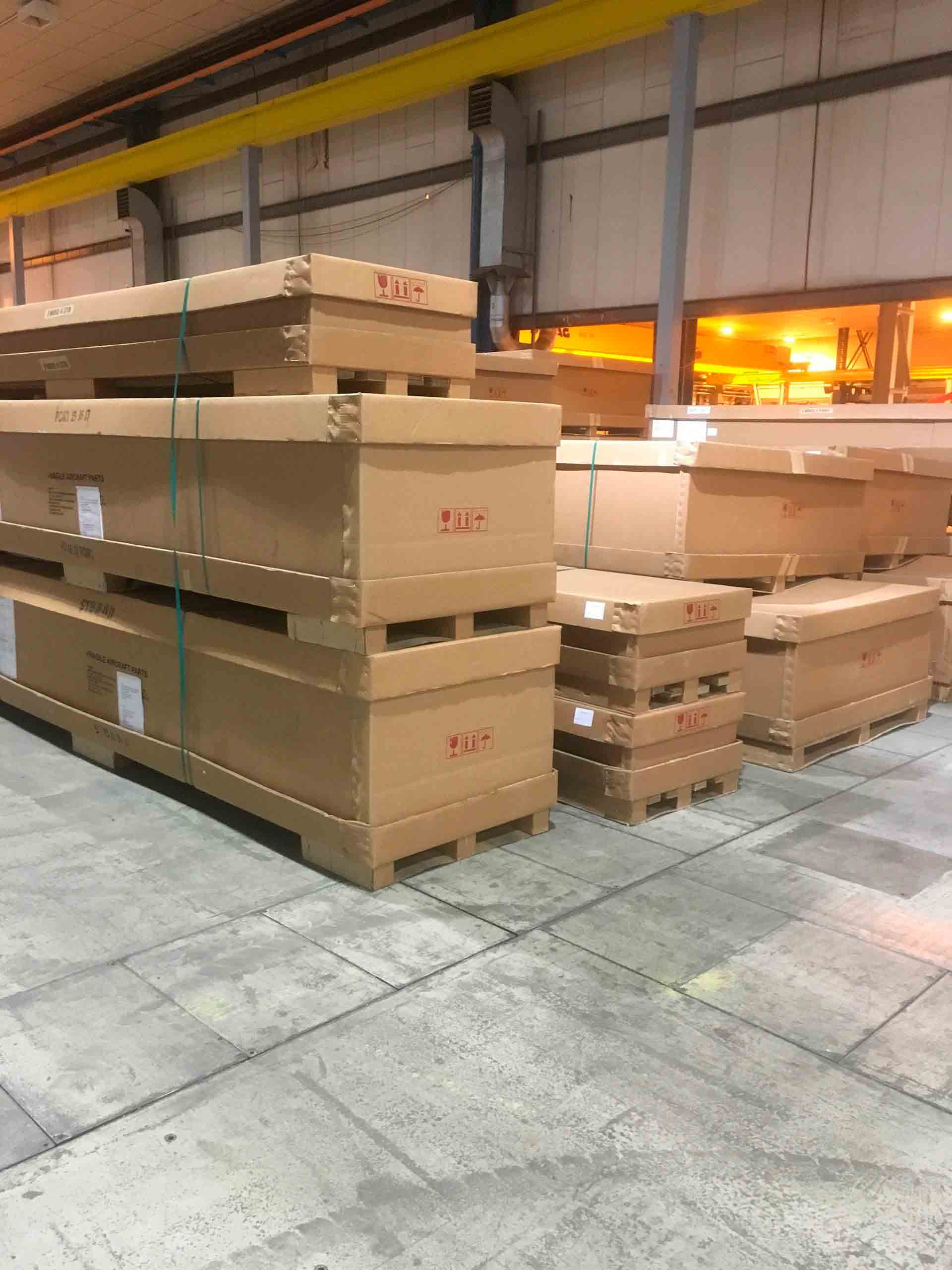 Spirit AeroSystems had a requirement for a storage/transport unit for composite Airbus A350 leading edge panels. The original method of storage/transport was to use the cardboard boxes that the supplier used to ship them from the Far East to Prestwick. While the panels were going through the production cycle, a large amount of empty boxes had to be stored so that they could be re-used to ship the panels to Airbus. The empty boxes would get damaged plus they tied up up a massive amount of storage space as can be seen in the photograph. A truck could only carry one complete shipset - sixteen cardboard boxes - and then the boxes became a problem for Airbus.